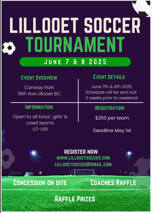Come out and enjoy an actioned packed day of soccer, for the second annual Carter Vigh Memorial Tournament. Carter was a loving, funny, soccer loving 9 year old boy. Sadly Carter lost his life on July 11, 2023 from an asthma attack exacerbated by wildfire smoke. at the time of Carters passing, the closest air quality monitor to 100 Mile House was almost 100km away in Williams Lake. James and Amber Vigh have started Carters Project, an initiative in honour of Carter Vigh which funds the free distribution of air quality monitors throughout British Columbia. As well as help to bring awareness to the seriousness of asthma. All proceeds from this event will go to Carters Project. The Vigh family looks forward to meeting everyone in attendance.